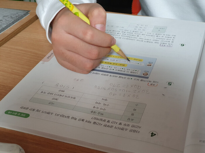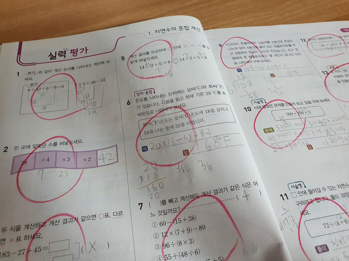 덧뺄셈에서 실수를 보여 틀려서 스스로 머리를 쥐어박던 행동도 이번에는 하지 않더라고요