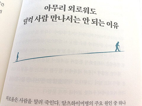 외로움은 ⋯ 사람들에게 둘러싸여 있을 때에도, 심지어 집에 가족과 함께 있을 때에도 찾아올 수 있다. 외로움은 뇌를 변화시킨다. 다른 사람들이 보내는 신호를 잘못 해석하게 하고, 적대감을 증폭 ⋯ 자기 파괴적 행동에 빠진다.