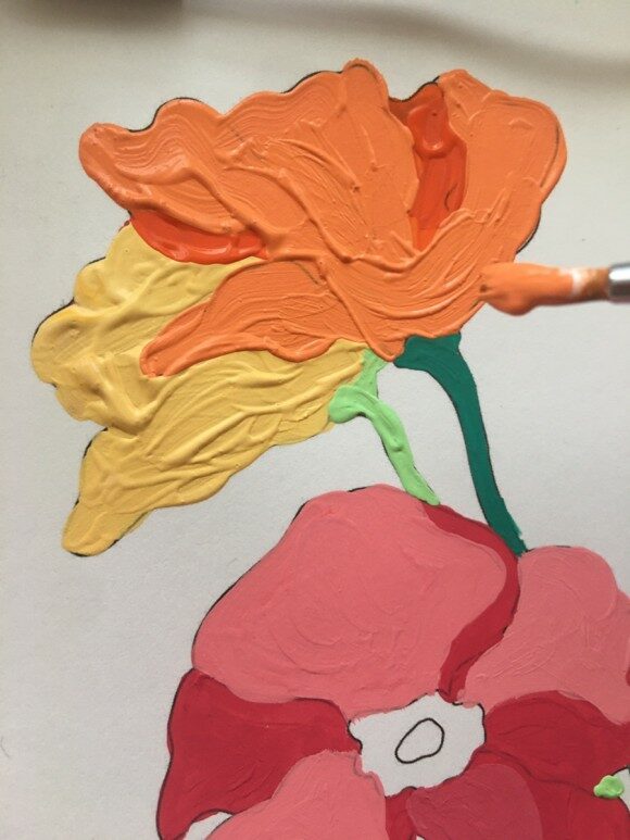 아크릴 물감을 넉넉하게 스며들만큼