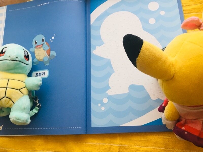 집에서 포켓몬 카드 수집가인 딸아이와 스티커컬러링북을 시작했습니다.