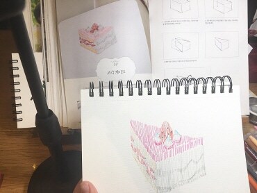 다음엔 케이크를 스트로크 기법으로 그려봅니다