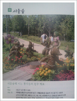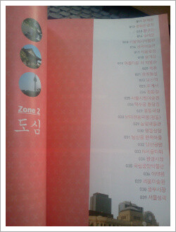 그 밖에도 서부권, 동부권, 강남권, 서부강서권, 서울근교의  총 7개 zone으로 나누어 서울 곳곳을 설명하고 있는데 정말이지 꼼꼼하게 서울을 돌아보려면 한 달은 족히 머물러야되지 않을까 생각해본다. 몇 년 전 한국을 처음 방문하게 된 젊은 외국인 친구를 만난적이 있다. 주말마다 홍대로 놀러간다고한다. 새로운 명소로 두각을 나타내고 있는 홍대거리가 젊은 외국인 친구들의 발길을 사로잡는데는 분명 매력이 있을 것이다. 하지만 우리의 역사와 문화가 온전히 깃들어 있는, 감탄을 자아내는 많은 장소가 많은데도 가보지 못하는 것이 안타까워 경복궁을 포함해 남산 주변을 소개해준 적이 있었다. 만약 그 때 이 책을 읽었더라면 더 많은 장소를 친절하게 알려줬을텐데하는 아쉬움을 느껴본다.