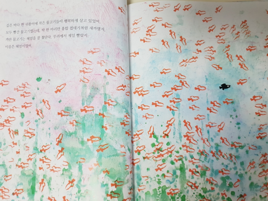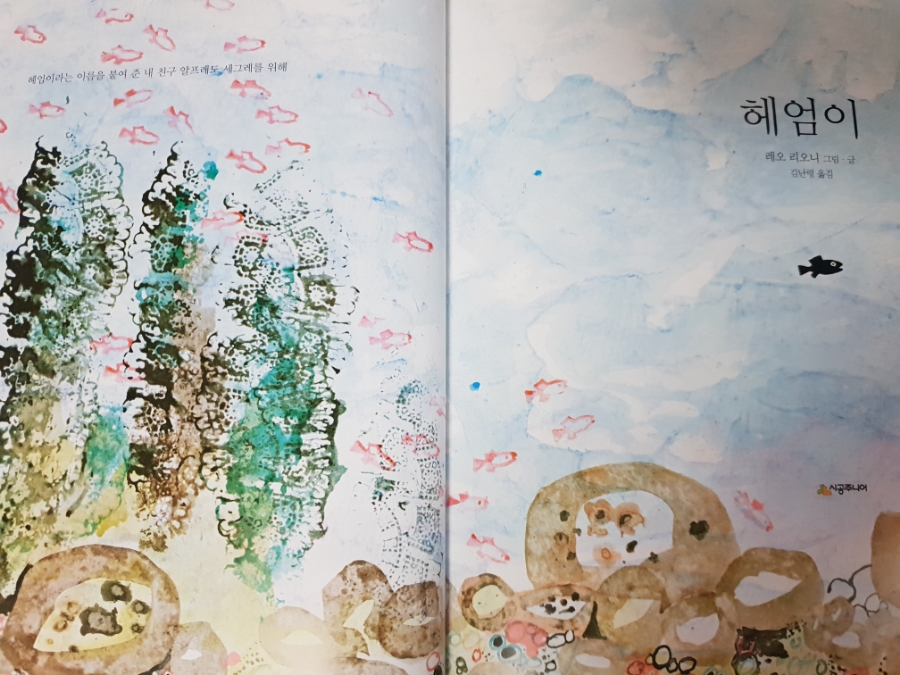 빨간 물고기 중 유일한 까만 물고기 헤엄이의 이야기.