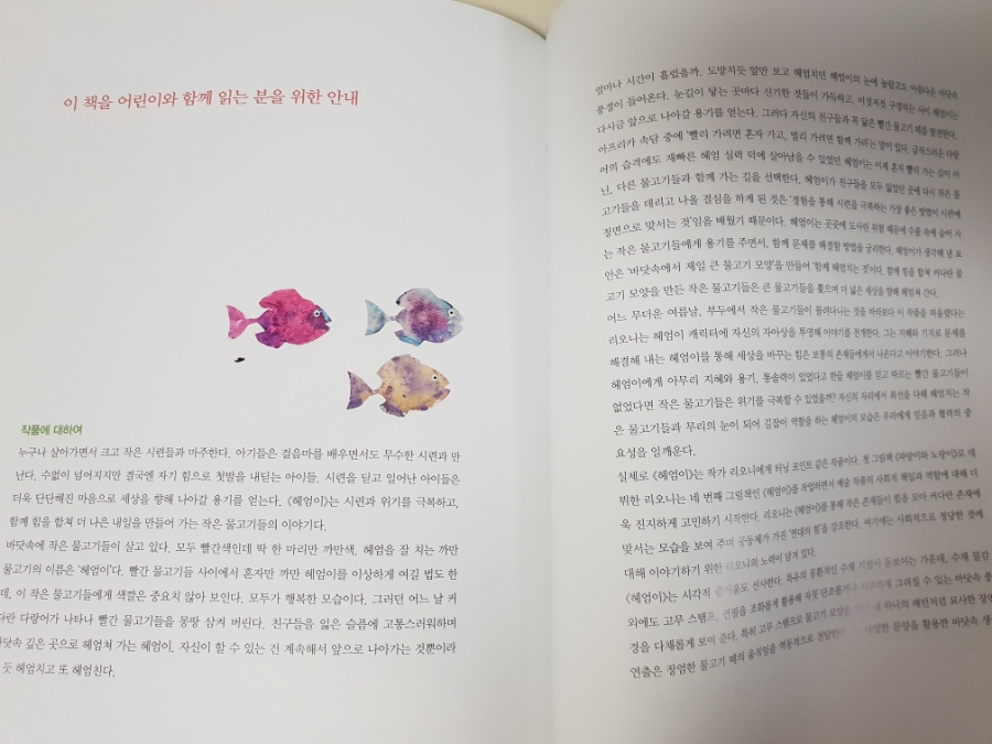 잔잔하면서도 아이에게 용기와 지혜를 심어줄 수 있는 따뜻한 동화, 헤엄이 입니다.
