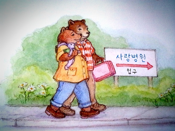 왠지 그림의 곰부부의 표정이과 엄마가 배에 손을 올려 놓구 걸어가는 모습에서