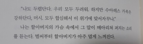 "나도 두렵단다. 우리 모두 두려워. 하지만 수아레스 가족은 강하단다,