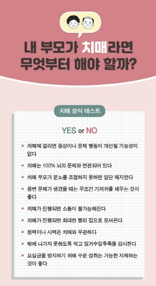 치매 상식 테스트를 해보시면 거의가 YES라고 생각했습니다.