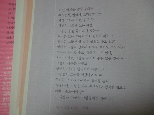 책 중간 중간 그녀가 메모해놓은 광고 카피들이 적혀있는데 다시 곱씹고 곱씹게 된다.