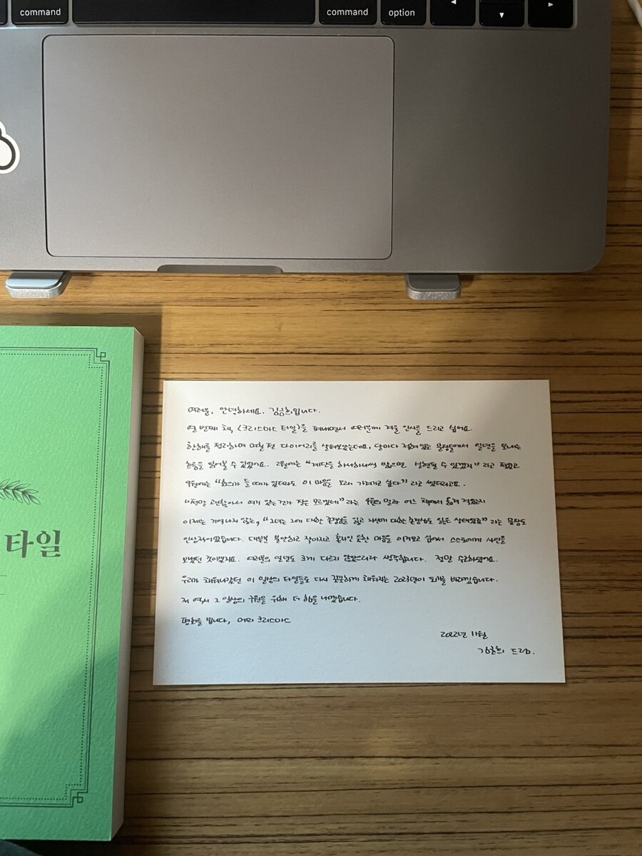 김금희 작가의 편지와 좋아하는 두 분의 추천사를 붙여요