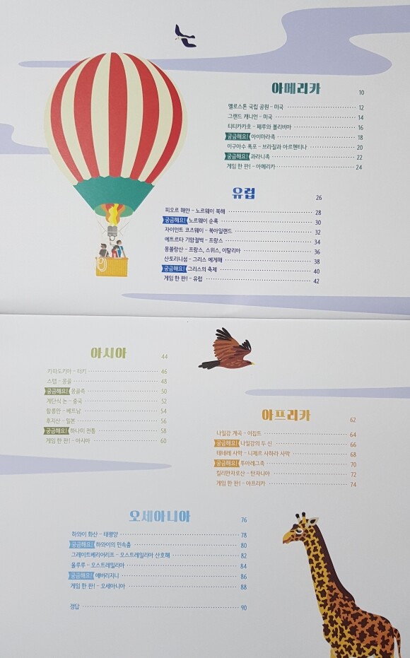 차례 순서를 보니 ㄱㄴㄷ 도 아닌 것이, 그렇다고 대륙의 크기도, 여행지의 갯수도 아니고...