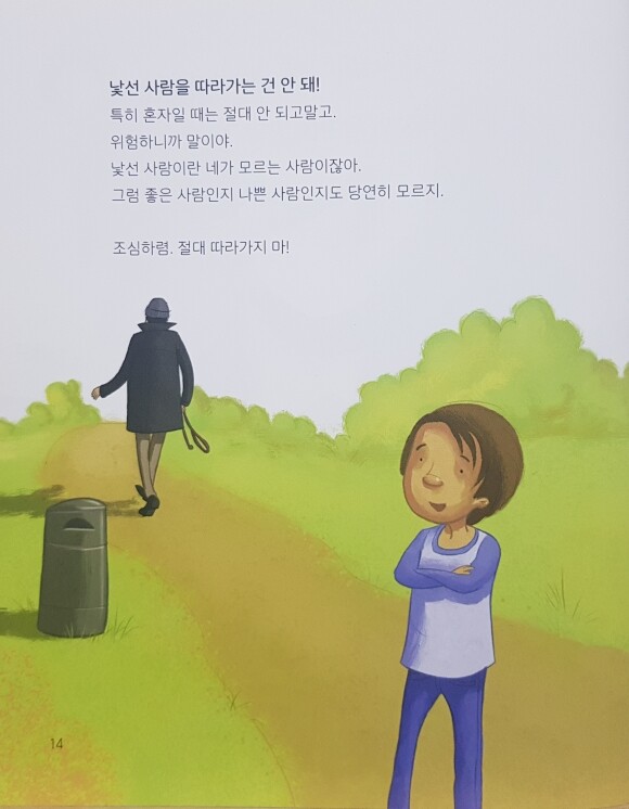 그럴땐 주위의 다른 어른에게 도와달라고 애기하라고 알려주었어요.