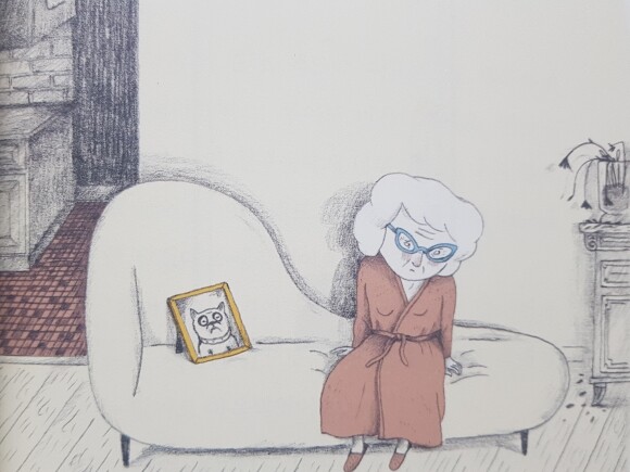 시내의 가장 큰 백화점 2층에서 커플룩 같은 구두를 여러 켤레 신어보고는 서둘러 도예수업에 참석합니다. 그 발 밑에는 언제나처럼 귀염둥이 알퐁소가 할머니 곁에 지키고 있어요.