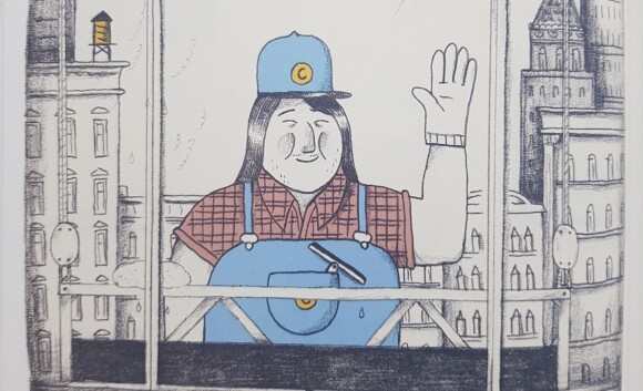 그 사람은 창 닦는 세제의 거품을 뿌리다가 멈추고는 할머니에게 사람 좋은 미소를 짓고,