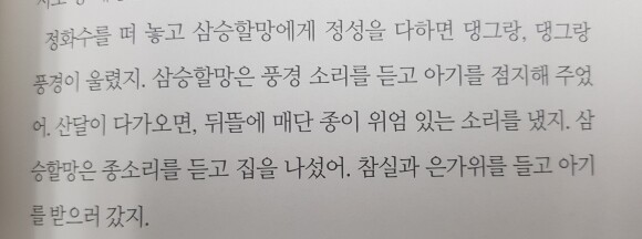 앞으로는 삼신할망이 아이를 점지해주는 때라는걸 생각하게 될거 같아요.