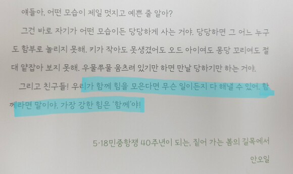 하지만 '함께'라면 두렵지 않아요. 함께 힘을 모을 때 가장 '큰' 용기를 낼 수 있어요!