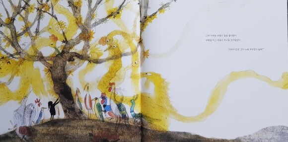 나무 아래로 바람이 솔솔 불더니 이번엔 바람을 타고 새들이 모여들었어요.
