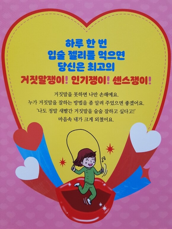그렇게 입술 젤리를 먹고 난 뒤로 이솔이는 술술 나오는 거짓말로 인해 난처한 상황을 모면하기도 하고, 싫어하는 음식을 안 먹어도 되고, 거짓말을 잘하니 엄마를 위로할줄 아는 기특한 딸 노릇도 해요. 숙제를 하지 않아도 혼나지 않으니 이정도면 정말 훌륭한 젤리라며, 아이들도 갖고 싶대요ㅎ