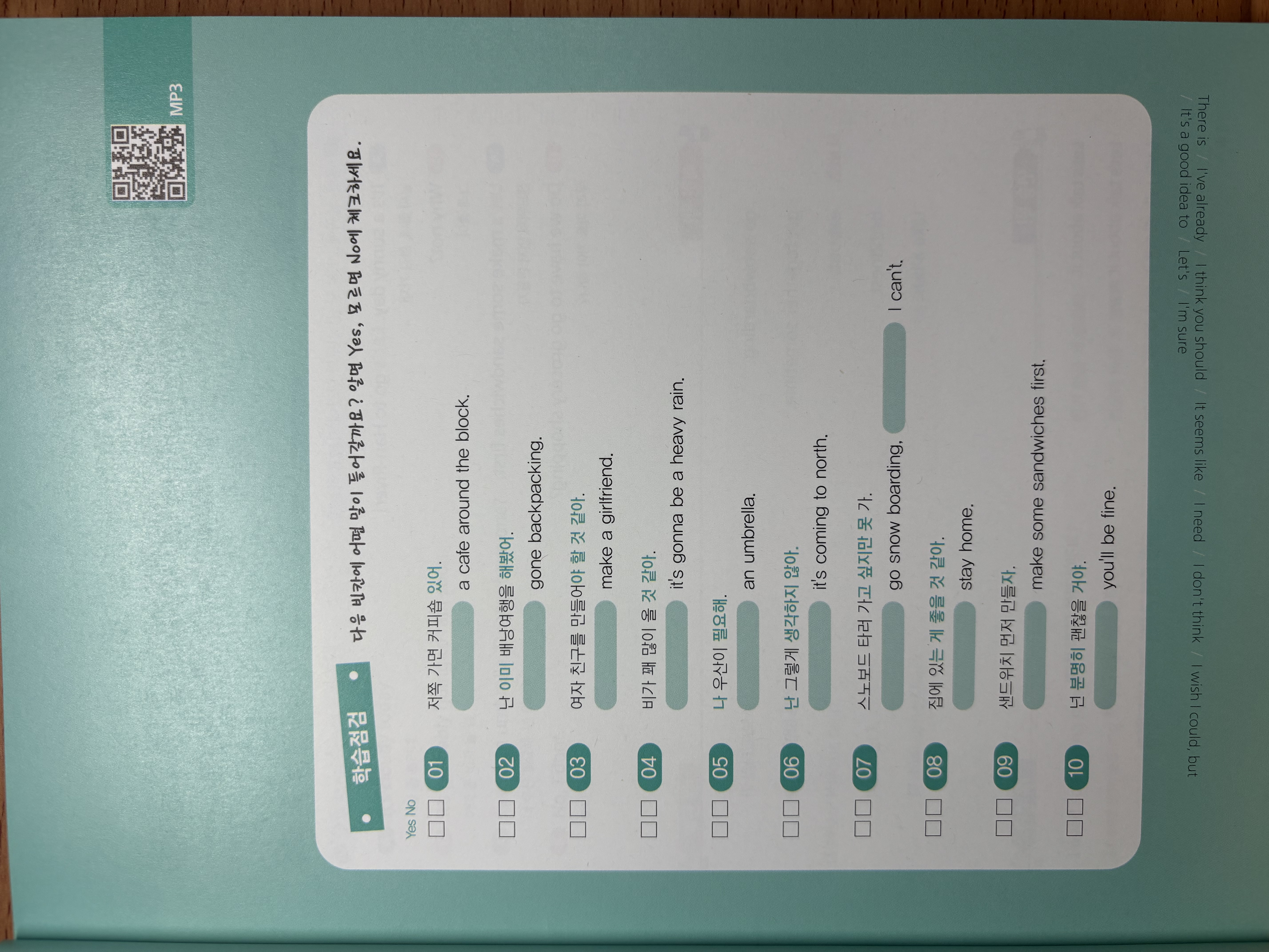 mp3도 좋고, 처음에 강의 QR코드고 있습니다. 1분 단위로 매우 짧아서 출퇴근이나 틈틈이 시간날때 틀기 좋습니다. 복습 시너지가 생각보다 크더군요. 일하다가 피곤하면 그냥 눈감고 틀어놨는데 잠이 매우 잘왔습니다.