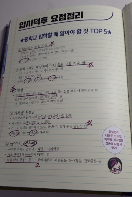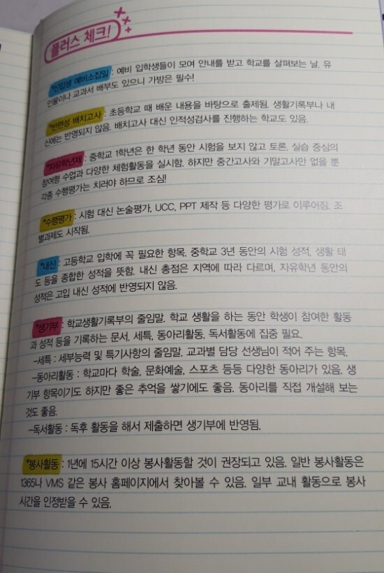 끝부분엔 중학교 입학시 체크할 부분도 나오니