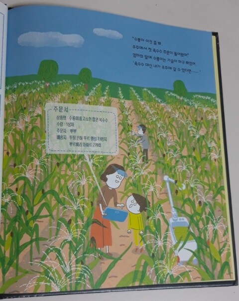 주인공인 수롱이네 옥수수밭에도 드디어 첫 우주 주문서가 도착했답니다.