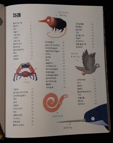 차례만 보아도 우리가 들어본 동물들이 많이 나오지요.