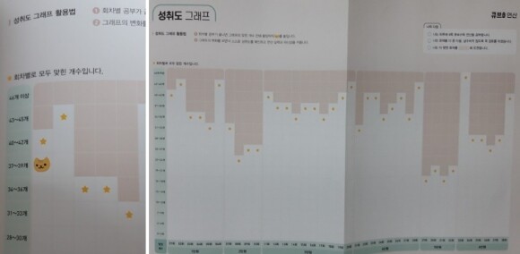 성취도 그래프는 정답갯수의 위치에 스티커를 붙여 더 잘할 수 있는 밑거름도 된답니다.
