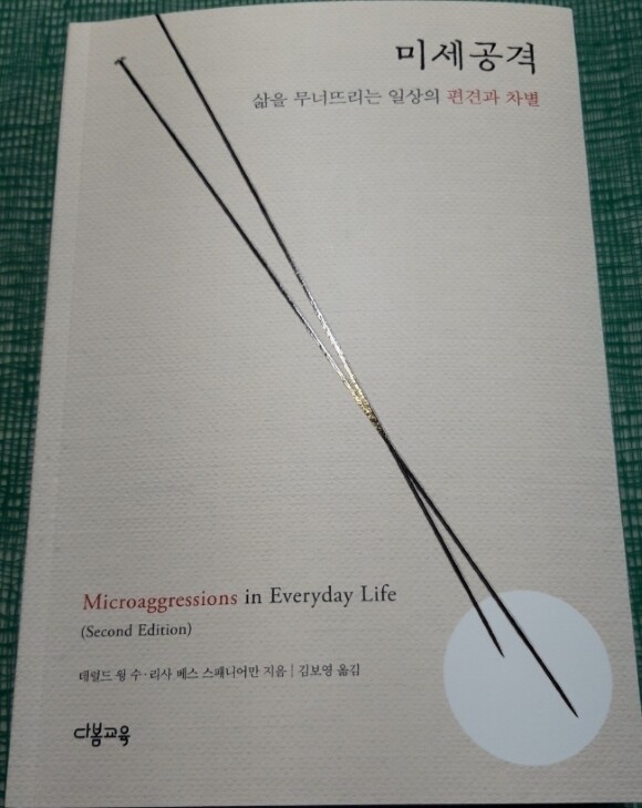 저는 이 책을 읽으며 우리 한국 사회도 미국 못지않게 미세 공격이 일어나고 있지 않나 생각되었습니다. 작은 사회, 단일 민족인 우리가 경쟁 구조 사회에서 살아남으려면 너와 나의 교집합이 더 많을수록 유리할 테니까 나와 다른 너는 배척당해 마땅하다 여겨짐이 어쩌면 더 심각하다 할 수도 있지요.