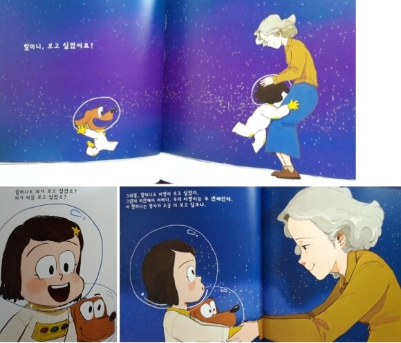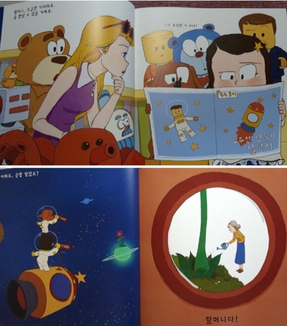 할머니와의 추억이 너무 그리운 손녀는 우주선을 만들어 할머니별로 보고 싶은 할머니를 만나러 갑니다.