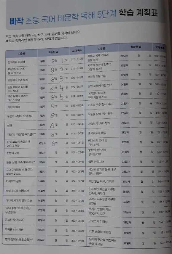 8주간 플랜으로 짜여 있고 비문학/문학 독해로 나뉘어져 있어 취향에 따라 먼저 시작할 수 있어요.