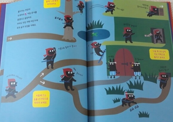 쫑알쫑알 이야기를 좋아하는 저희 집 귀염둥이 둘째는 이런 책은 처음이라 신기하고 재미있는지 자꾸 펴서 이야기도 꼼꼼히 살펴보고 손가락으로 길도 따라가보고~ 아주 바쁘더라고요.