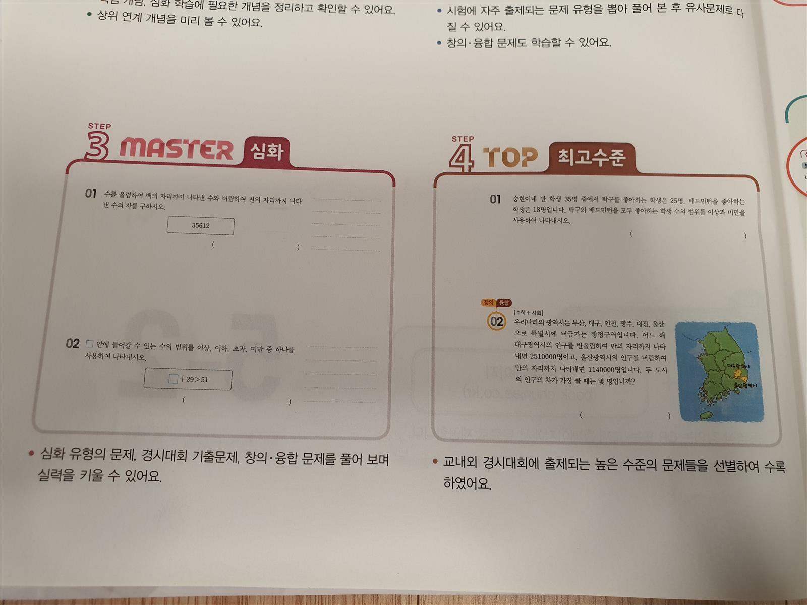 창의ㆍ융합 문제를 통해 실생활 지식등을 수학과 융합해서 문제 풀이 진행하는 것이 흥미로운...