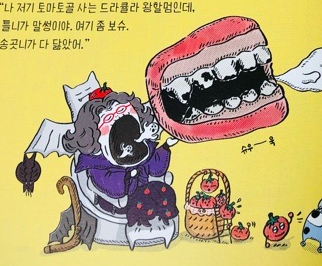 토마토골 사는 드라큘라 왕할멈은 틀니가 말썽이라 틀니를 고치러 왔다가
