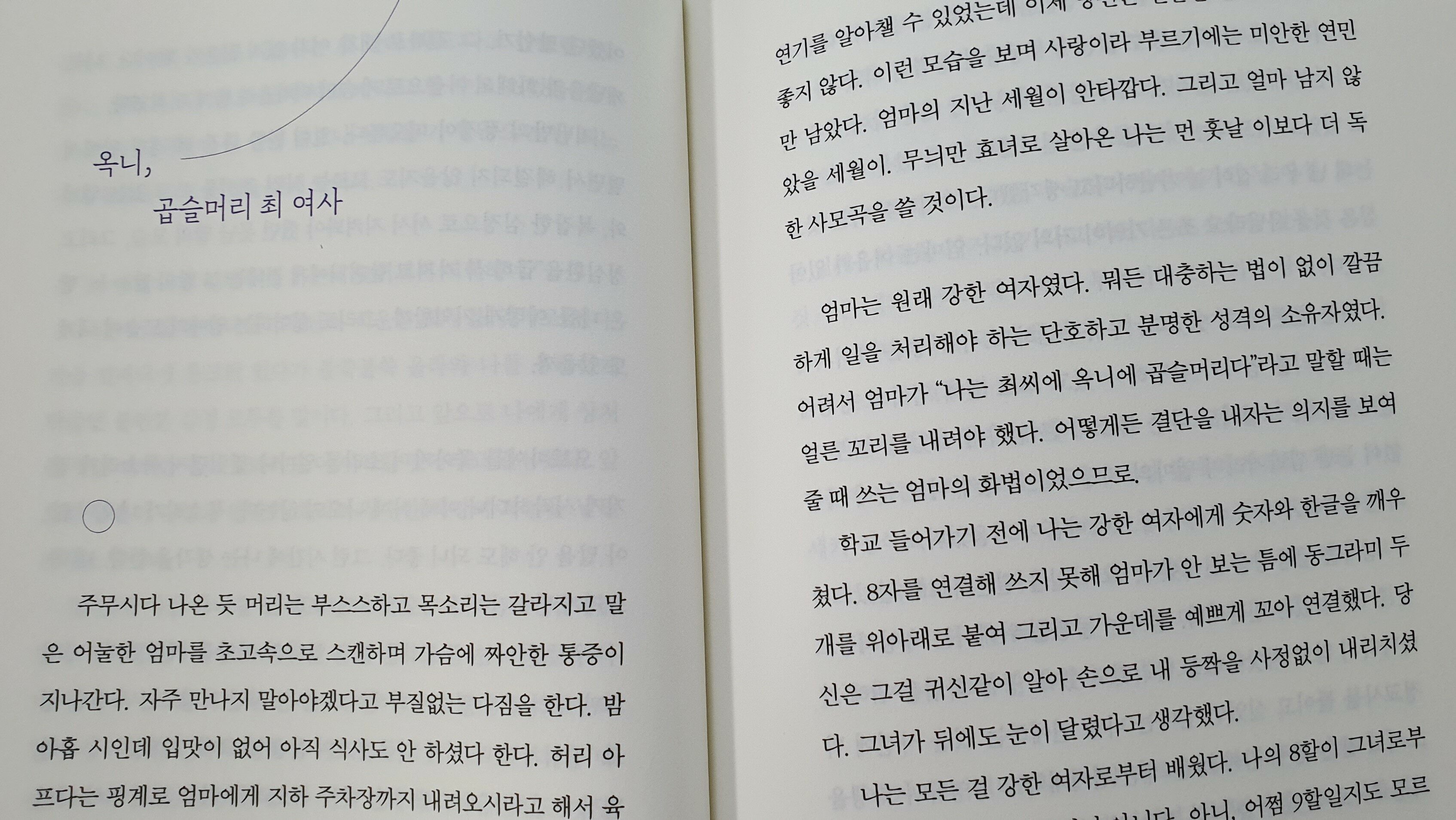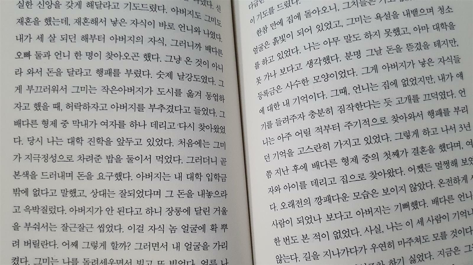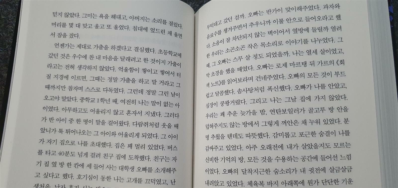 어느 누구에게나 어릴적 기억이 행복한 추억으로 남아있지는 않습니다. 어떤 이에게는 행복한 가정에서 풍요로움과 사랑스러움으로 가득 채워져 있겠지만, 어떤 이에게는 폭언과 폭력으로 점철된 기억하기 싫은 것으로 남아있습니다. 그미라고 부르는 그녀는 시아에게는 첫 기억부터 상스럽고 수준 낮은 욕으로 시작됩니다. 시아는 채 철이 들기도 전부터 항상 소리지르고 혼내며 집어 던지는 그미와 가족들에게서 자라왔습니다. 아버지는 시아가 잘 때 들어왔다가 잘 때 출근하여 보기 힘들며 어떤 일이 있어도 그미에게는 사랑을 받지 못합니다. 제대로 된 밥도 챙겨먹지 못하고 다른 또래 아이들이 누리는 소소한 행복들을 시아는 누리지 못합니다. 자신감도 자존감도 존재감도 한 없이 낮아지고 하찮아질 수 밖에 없는 시아, 그 시아는 괴물과 함께 살아왔지만 그 괴물과 멀어지면 다가올 것 같았던 행복이 찾아오지 않음을 나중에 알게 됩니다. 이 책은 괴물과 함께 살아왔던 시아의 이야기이자 스스로의 마음을 치유해오는 소설입니다. 시아는 스스로를 개였다고 표현하기도 하는데 개가 그녀인지 그녀가 개인지 외톨이와 같은 그녀는 개와 같습니다. 동네에서 다쳐서 움직이지 못하는 떠돌이 개, 덩치가 자신만큼 커다랗지만 힘들게 끌고 수소문해서 집까지 데려다 줬지만 그 집은 결국 그 개를 팔아버릴 집입니다. 그리도 뒤에도 나오는 동네의 모든 개들의 이름인 해피, 정작 그미와 언니 그리고 시아는 조금도 행복해보이지 않습니다. 저자는 시아의 어릴적 모든 악몽과 같은 기억을 하나씩 하나씩 끄집어 내는데, 이는 작가 본인의 이야기 그 자체라고 생각됩니다. 시아는 어릴적 부터 불행한 삶으로 기억을 시작했고, 젊은 나이에 처음으로 스스로 죽겠다는 생각을 하기도 했으며, 단 한 푼의 돈도 없기에 먹고 살기 위해 절대 가서는 안 될 곳까지 가보기도 했습니다. 주인공이 그렇게 자신의 과거이야기와 현재, 다시 과거 그리고 현재를 반복하면서 조금씩 꺼내어 놓는 암울하고 고독한 이야기는 너무도 담담한 문체 덕분에 더 우울하게 느껴집니다. 결국 그미와 멀어지면 행복해질 것이라는 그녀의 생각을 정작 현실이 되었어도 그렇지 않았음을 알게 되면서 그미는 다시 사이와 함께 합니다. 세월의 흐름은 괴물도 외톨이도 과거의 모습과 달라지게 하는 것 같습니다. 결국 마음을 치유하는 이야기, 푸른 침실로 가는 길 입니다. 출판사로부터 책을 제공받고 솔직하게 썼습니다