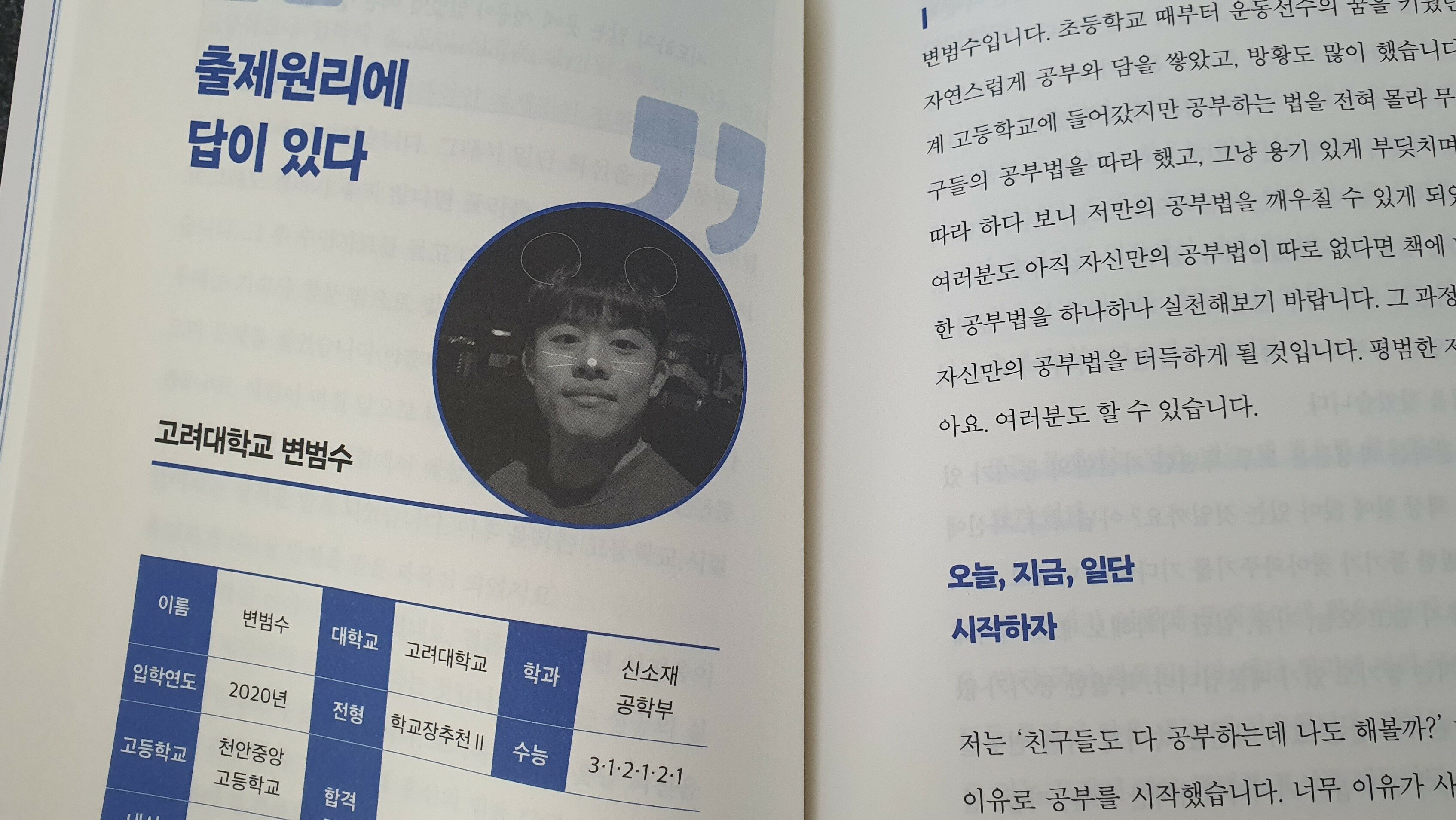 서울대학교 입시전략, 고려대학교 합격방법, 홍익대학교 입시방법, 카이스트 면접 전략등을 굳이 구체적으로 언급하지 않더라도 이 책에서는 실제로 그 명문대학교이 입학한 입시위너들의 인터뷰가 담겨있습니다. 서울대학교 경영학과부터 카이스트까지 주요 대학교에 최근 10년간 입학한 학생들이 스스로 어떤 공부를 했고, 어떤 동기를 유지했으며, 어려움을 극복한 솔직한 이야기를 볼 수 있습니다. 만약 공부에 깊게 빠져들지 못한 고등학생이나 방향을 잃은 재수생 또는 그들의 학부모들에게는 좋은 도움이 될 듯 합니다.