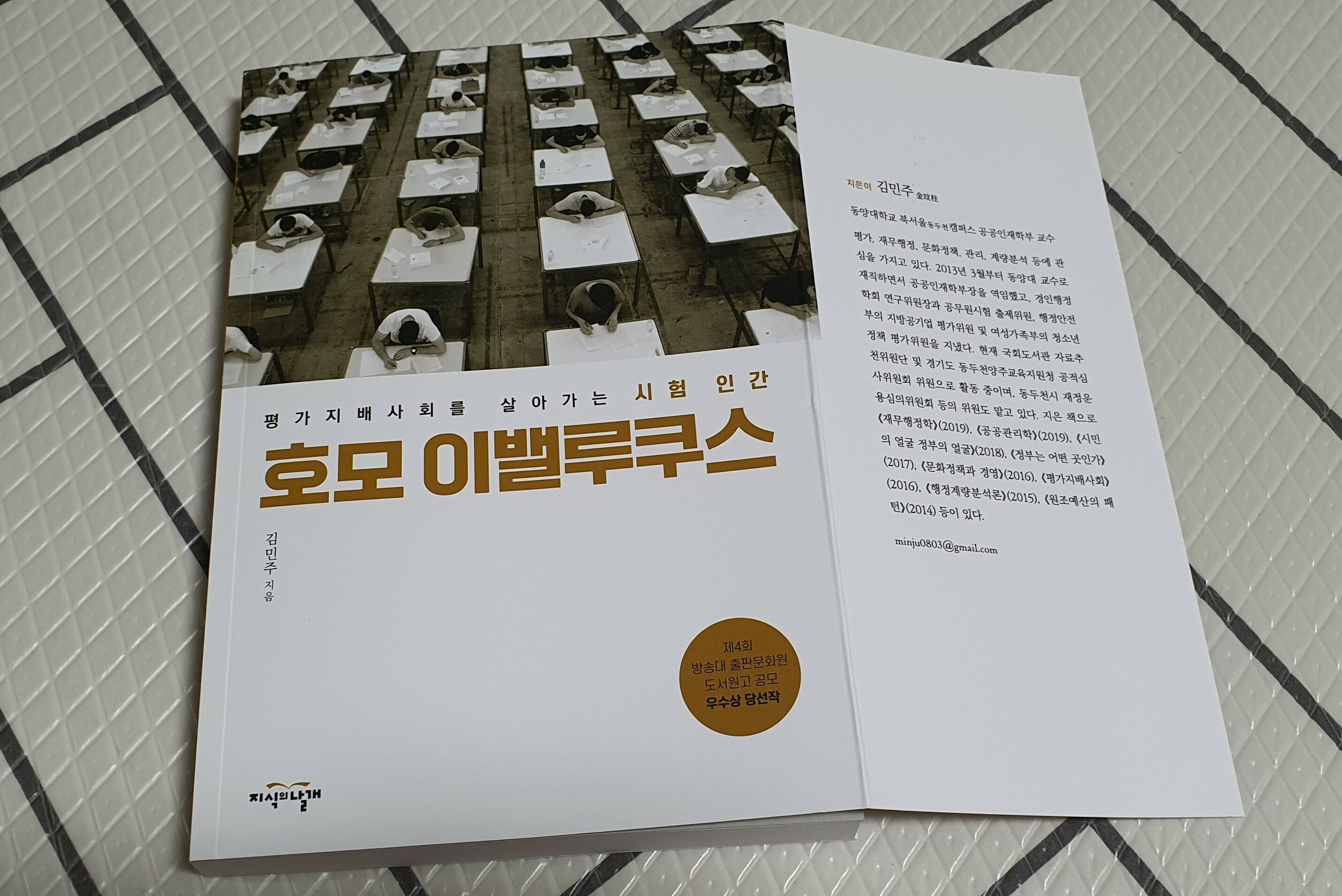 이 책의 저자인 김민주 교수의 전작중에 하나인 "평가지배사회"와 맥을 같이하는 책으로 보이는 이번 신간 "호모 이밸루쿠스"는 평가지배사회에서 살아가는 시험인간에 대한 이야기입니다. 바로 우리 대한민국의 인간군상에 대한 이야기입니다. 책의 서두에서는 일상속에서 호모 이밸루쿠스가 살아가는 모습을 담았고, 2장에서는 우리네 인간들이 호모 이밸루쿠스로 어떻게 성장하고 자라가는지 설명합니다. 3장은 호모 이밸루쿠스가 성장하면서 서로 서로 너무도 닮아가는 현상을 이야기합니다. 4장은 평가과정에서 권력을 마주할 때의 실상을, 5장은 호모 이밸루쿠스가 만들어가는 시장의 모습을 그렸습니다. 6장에서는 행운이 따르는 경우 호모 이밸루쿠스에 미치는 영향과 마지막 7장은 평가지배사회에서 진화하는 호모 이밸루쿠스의 모습을 그렸습니다.