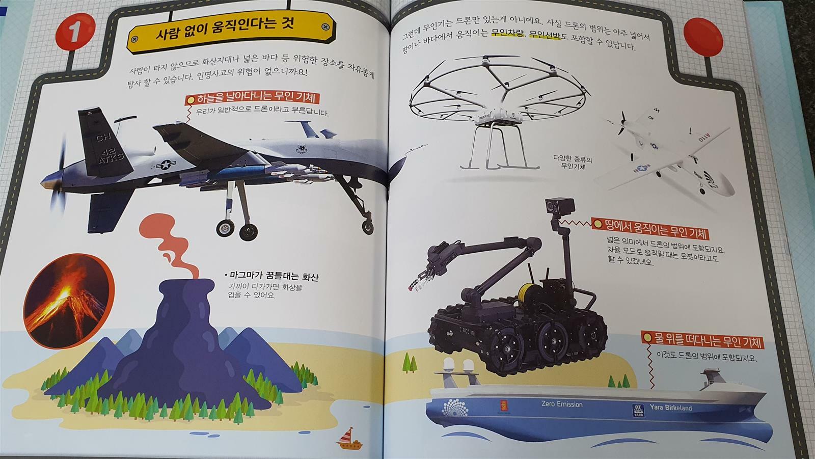 이 책에서는 무인드론, 의료드론, 편리한드론, 군사드론, 엔터테인먼트 드론 등을 다양하게 사진으로 소개하고 있습니다. 그리고 어찌보면 가장 중요한 "드론의 안전 수칙"도 빠짐없이 소개하고 있는데 이 부분은 드론을 직접 날리고 싶어하는 아이들에게 필수적인 교육사항입니다. 심지어 어른들중에서도 드론 비행금지 구역에 대해 잘 모르는 경우도 있기 때문에 아이와 함께 읽어봐야 겠습니다