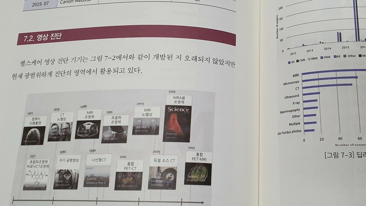 헬스케어와 인공지능의 결합은 이미 국내의 주요 대형병원에서 실질적으로 진행되고 있음을 알려주고 있는데, 아산병원, 세브란스병원, 서울대병원등이 마이크로소프트 등의 기업들과 협업하여 구축하고 있습니다. 인공지능은 헬스케어와 결합하여 다양한 형태로 서비스를 제공할 수 있는데 새로운 치료법 발견, 효율적인 진단과 치료, 새로운 약품의 발견, 디지털치료제, 병원서비스 개선등을 제공할 수 있습니다. 또한, 인공지능 헬스케어는 필수적으로 빅데이터 분석과 연결되며 병원과 진료시설 등에서 발생하는 수 많은 정형, 비정형 데이터를 분석하여 인공지능 기술로 인해 맞춤형 헬스케어 시스템으로 제공됩니다. 책에서는 인공지능, 딥러닝, 이미지인식, 자연어처리 등의 주요 기술에 대해서 간략하게 소개하고 있고 국내외 헬스케어 관련 정책의 변화사항도 설명하고 있습니다. 최근 2020년 8월에는 대구와 강원도가 인공지능 헬스케어 관련 실증단지로 지정되기도 했으니 다양한 혁신이 발전하기를 기원해봅니다.