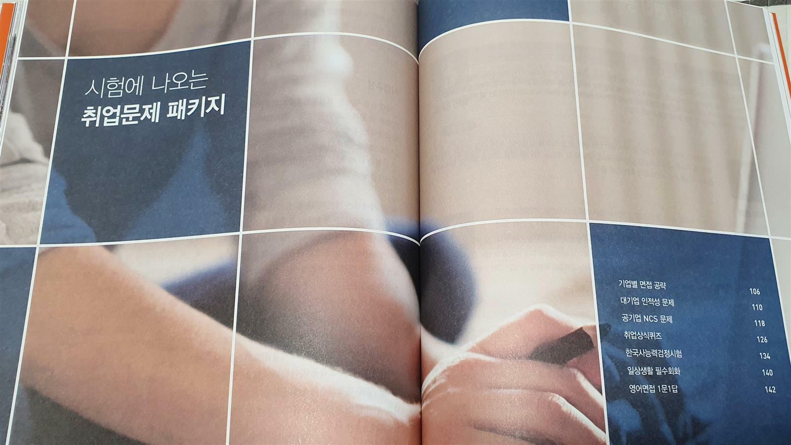 이 책의 구성에서 돋보이는 것은 매 달 정리되는 핫이슈뿐만이 아닙니다. 물론 해당 이슈들을 정리하고 이해관계를 이해하며 찬반논란을 분석하는 것은 굉장한 이득입니다. 그러나 책의 후반부에 배치된 취준생 컨텐츠야말로 최신이슈&상식의 핵심입니다. NCS문제분석, 한능검시험문제, 대기업인적성, 영어면접공략, 자기소개서첨삭, 자격증정보 그리고 다양한 최신 상식까지의 구성은 매 달 정리하여 따로 보관하지 않아도 한 권의 책으로 알려주는 최고의 취준생 교과서라고 할만합니다
