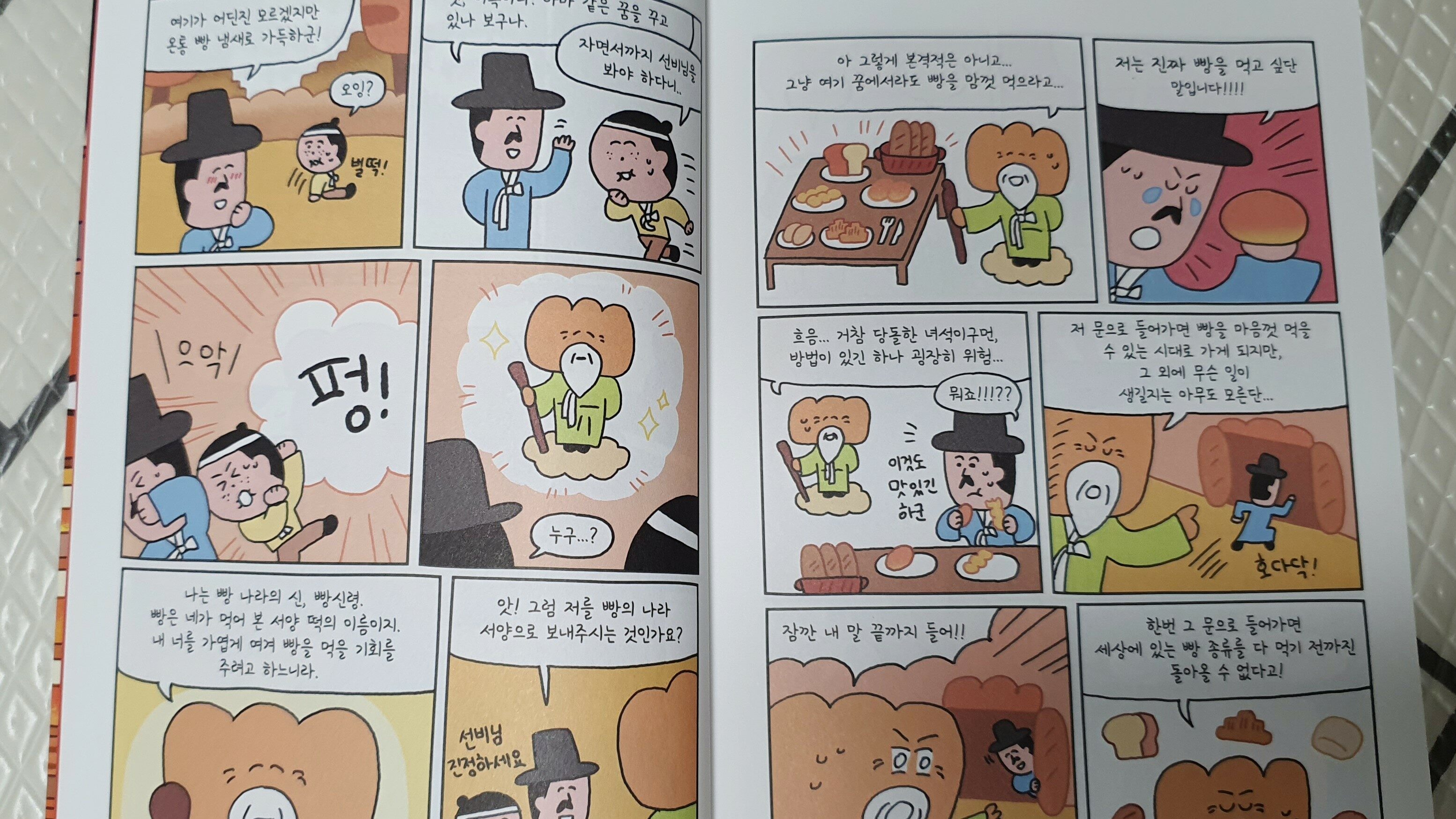 때는 1730년대 조선의 한양, 이 곳에는 평소에 밥을 잘 먹고 남들보다 곱절로 식탐을 가졌다는 한 선비가 살았습니다. 어느날 선비의 형이 서양에 방문하고 돌아와서 맛 보여준 빵/떡을 먹고 난 후 빵에 대한 애절한 상사병에 걸립니다. 이를 본 산신령은 평생 빵을 먹을 수 있는 기회를 주고 선비는 그 알 수 없는 문으로 들어가 이세계(바로 지금)으로 옵니다. 그 뒤를 쫒아간 돌쇠는 팥빵얼굴이 된 팥쇠가 되고, 선비는 식빵모양을 한 빵선비가 됩니다. 이렇게 빵선비와 팥쇠가 소개해주는 서울의 가장 유명한 빵집들와 맛있는 빵들의 유래를 알려주는 만화체의 감성에세이가 나왔습니다. 만화로 보면서 맛있는 빵집을 구경하는 재미가 굉장히 쏠쏠하고 재미있을 뿐만 아니라, 크루아상, 식빵, 앙버터, 스콘, 도넛 등 평소에 좋아하는 빵들의 유래와 역사도 알 수 있는 교양서적으로서의 값어치도 훌륭합니다.
