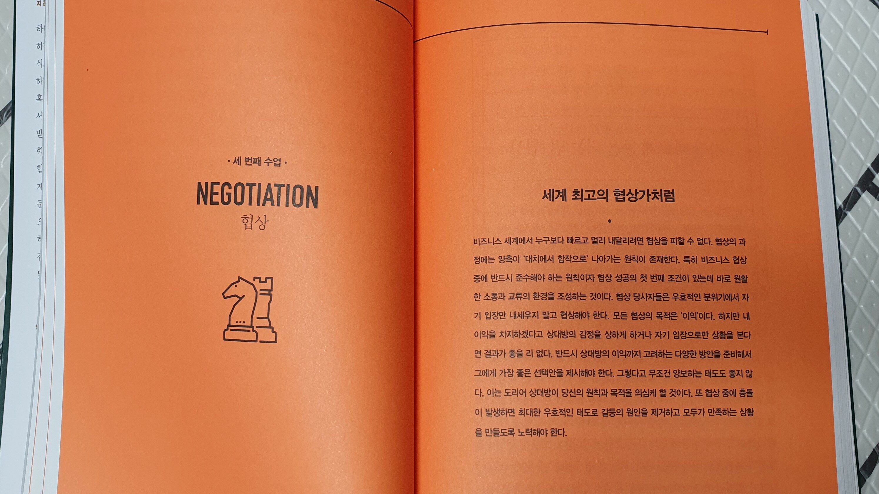 하버드 졸업생과 경영자들의 성공적인 비즈니스 전략을 총 열 가지의 주제와 78가지의 전략으로 정리되어 있습니다. 전략, 효율, 협상, 마케팅, 투자, 재무, 인맥, 인력자원, 정보, 위기로 나뉘어진 챕터마다 각 주제에 적합한 상세한 비즈니스 전략이 담겨있고 각 전략마다 실제로 하버드에서 배출한 전략가들의 전략을 예시로 들고 있습니다. 이 책에서 가장 중요한 항목이자 가장 깊은 내용을 담고 있는 챕터는 당연히 제1장의 [전략=생각을 행동으로, 전략을 추진으로] 챕터입니다. 성공하는 경영자가 반드시 갖춰야할 역량과 덕목을 정의하고 있는데 이러한 역량은 나머지 아홉개의 챕터의 78개 전략을 아우르는 혜안을 담고 있습니다. 하버드 공개강의 연구회에서 정의한 성공하는 경영자가 갖춰야 할 덕목중에서 대표적인 것들을 이와 같습니다. "오래토록 기업을 유지하고 이끌어줄 수 있는 경영전략", "실현이 가능한 청사진을 그리는 자질", "기업을 둘러싼 시장의 흐름을 읽을 줄 아는 예측력", "멀리 바라보고 행동하는 통찰력", "성공을 포착하는 가시적인 안목", "기회를 보는 예리함" 이러한 자질을 가진 경영자들이 바로 하버드 출신 졸업생들이 알려주는 성공 방정식입니다.