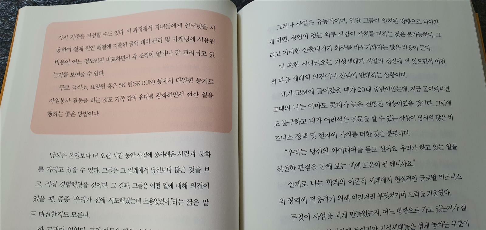 책에서 다루는 내용은 크게 "가족기업의 문제점", "문제점을 해결하는 방법", "가족기업의 승계 전략"으로 나눌 수 있습니다. 이 중에서 마지막의 적절하고 성공적인 승계에 대해서 가장 많은 지면을 할애하고 있는데 가족기업의 궁극적인 목적이 안정적인 오너 승계에 있기 때문이라고 이해했습니다. 책의 초반에는 가족기업에서 실제로 발생할 수 있는 다양한 문제 상황을 수록하고 이에 대한 해결책을 제시합니다.