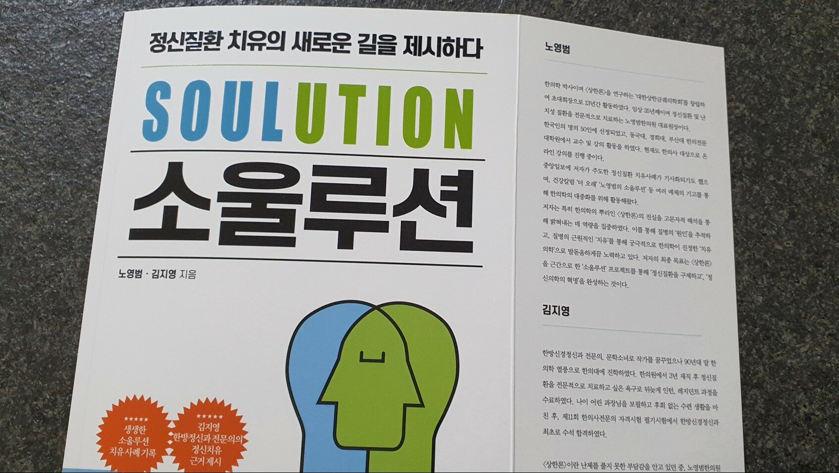 소울루션의 저자인 노영범 박사는 본인도 어릴적 수면질환을 포함해 정신질환을 겪었던 경험을 가지고 있습니다. 당시 모든 것을 포기할 정도의 지경에 이르렀다가 한방의학의 도움으로 극복했던 경험을 말해주는데 그 이후에 양학과 한의학 및 정신의학 등을 총제적으로 공부하면서 소울루션을 위한 기반을 닦았습니다. 그는 기존에 정신질환 의학의 방향이 잘못되어 가고 있다고 말하고 있습니다. 그리고 그 방향성을 천 년도 전에 고대 중국의 상한론에서 답을 찾고 있습니다. 저자는 상한론을 연구하기 위해서 현대에 전해지고 있는 번역본의 의미가 잘못되었을 수도 있다고 판단하여 국내 최초로 갑골문자를 전문으로 하는 교수와 함께 연구하면서 상한론에 대한 보고서를 작성하기도 했습니다. 노영범 박사가 연구한 상한론은 총 일곱가지의 질환을 기반으로 하고 있는데 고대 상한론에서 말했던 칠병변병은 현대의 정신질환과도 미묘하고 신기하게 연결되는 것이 흥미롭습니다. 몸의 과잉행위가 질병을 야기한다고 하며, 신체의 질환과 정신적이 질환은 자연스럽게 연결되어 있음을 이야기합니다. 천 년도 전의 상한론을 칠병변병으로 분석하고 이를 현대 정신질환과 연결하여 이론으로 정립하고 치료의 바람직한 길을 제시하는 이 책에서는 실질적이고 구체적인 이야기를 설명합니다. 특히 책의 후반부에는 공황장애 등 지금 많이 발생하는 정신질환의 사례들을 설명하고 있습니다. 누구나 살면서 한 두번쯤은 생각해볼 수 있는, 나도 이러면 정신병을 가졌을까?라는 물음에 대한 대답을 저자가 알려주고 있습니다. 누구보다 더 열심히 살고 앞서고 싶어서 단 하나의 여유도 주지 않음으로서 발생하는 공황장애 이야기는 너무 공감이 많이 되었습니다. 그 뿐만 아니라 우울증, 조울증, 중독증, 불안장애, 강박증, 식이장애 등의 이야기는 모두 현대인들이 반드시 읽어봐야 할 내용입니다.