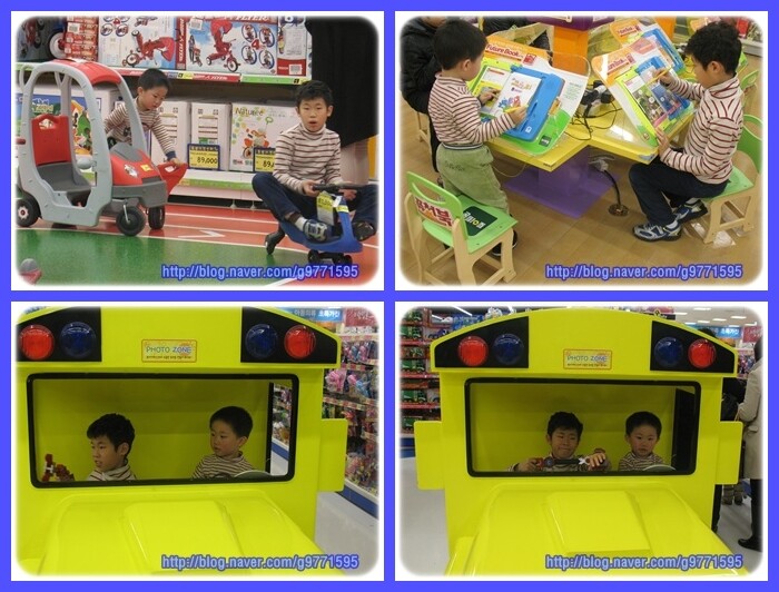 시승을 위해 놓여진 여러가지 탈것들을 타고 두 형제가 너무도 재밌게 놀았어요.