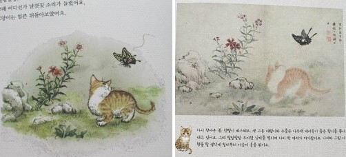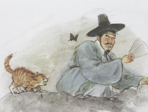 이어지는 삽화는 요렇게 고양이와 나비가 그 선비를 혼내주는 장면.....! ㅎㅎㅎ