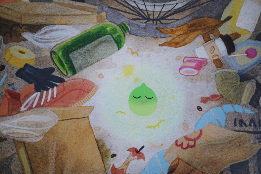 하지만 그럽은 쓰레기를 뒤적거리느라