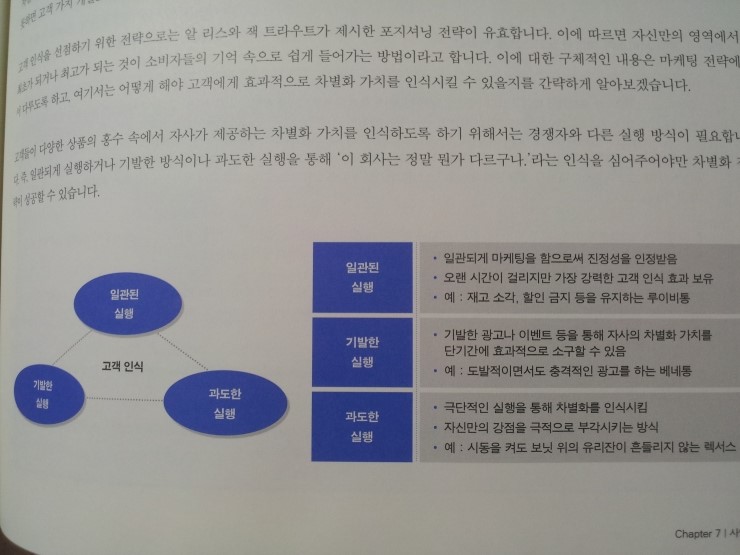 차별화방법. 일관된 실행, 기발한 실행, 과도한 실행