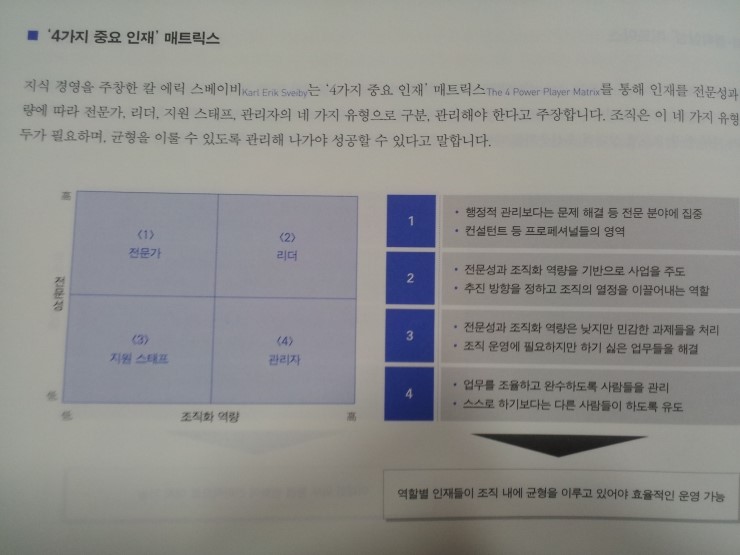 4가지 중요인재 매트릭스. 전문가, 리더, 스태프, 관리자. 역할별 인재들이 조직 내 균형을 이뤄야 한다.