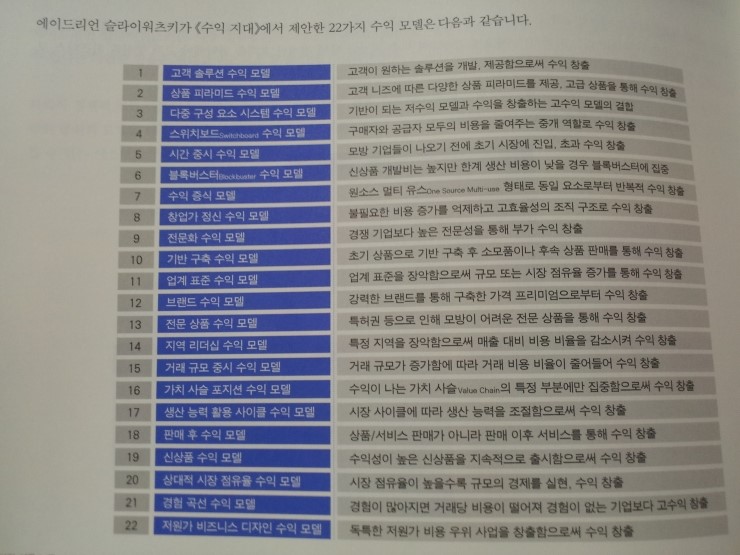 애드리언 슬라이워츠키가 <수익지대>에서 제시한 22가지 수익모델