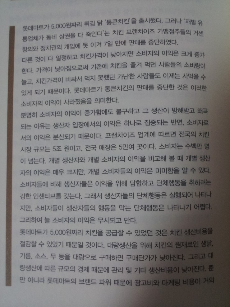 통큰치킨 이야기도 나온다. 치킨시장은 5조 규모, 치킨집은 5만 개