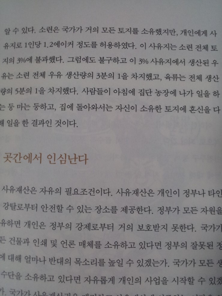 소련 시절 3%의 사유지에서 총생산량의 1/3이 나왔다고. 어디서 나온 데이터인지 의문이긴 한데 사실이라면 시사하는 바가 많다.